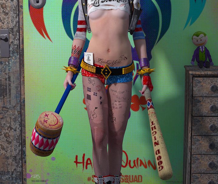 - Suicide Squad Look Overall: Emphasizes playful yet sinister aesthetics with clown-inspired makeup elements.